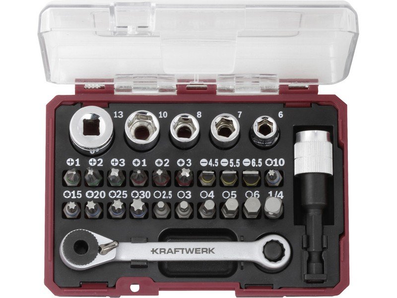 - 32-dílná sada bitů a nástavců s ráčnou 1/4" - bity z kvalitní S2 oceli - 1/4" ráčna - 1/4" bity: PH1 / PH2 / PH3 - 1/4" bity: PZ1 / PZ2 / PZ3 - 1/4" bity ploché: 4.5 / 5.5 / 6.5 mm - 1/4" bity Torx: T15 / T20 / T25 / T30 - 1/4" bity Inbus: 2.5 / 3 / 4 / 5 / 6 mm - 1/4” adaptér - 1/4" adaptér na bity - v plastovém obalu