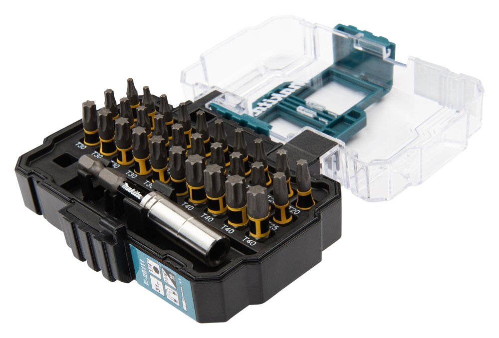 Nové torzní bity se zvýšenou tvrdostí a odolností materiálu. Díky tomu nabízejí výrazně vyšší životnost ve srovnání s bity Impact Gold. Různé typy bitů jsou barevně rozlišené.Sada obsahuje: T10 x 4, T15 x 4, T20 x 6, T25 x 6, T30 x 6, T40 x 4, držák bitů x 1 ks
