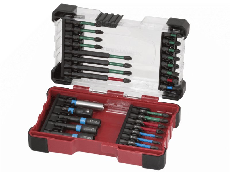 - 29-ti dílná sada bitů - pro šroubování a rázové utahování - optimální přenos sil - bity ocel typu S2 (chrom/silicium/magnesium/molybden/vanadium) - 1/4" bity /25mm: PH 1 - 2 - 3 / PZ2 /Torx T20 - 1/4" bity /50mm: PH 1 - 2 - 3 / PZ2/ Torx T10 - T15 - T20 - T25 - 1/4" bity /89mm: PH 2 - 3 / PZ2 - uloženo v plastové kazetě