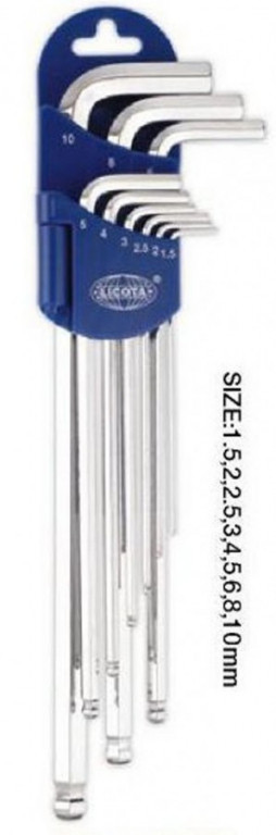 Sada extra dlouhých imbusových klíčů s kuličkou, 9 ks