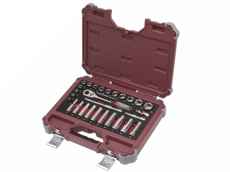 - 28-dílná gola souprava pro všestranné použití - 3/8" ráčna 72 zubů - 3/8" nástavce: 8 - 24mm - 3/8" nástavce prodloužené: 8 - 19mm - 3/8" prodloužení 75 - 150mm - 3/8" kardan - vyrobeno z vysoce kvalitní chromvanadiové oceli - uloženo ve speciální pěnové EVA vložce s vysokou hustotou pěny - v pevném plastovém obalu