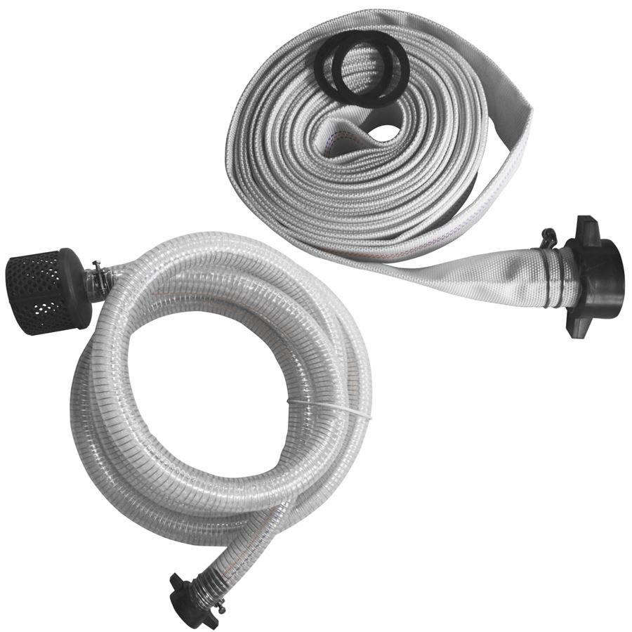 Souprava sací a výtlačné hadice, určená pro benzinové čerpadlo GMP 15.22 (94501). Složení sady: 4 m sací hadice, 10 m výtlačná hadice, sací koš, hadicové koncovky 1 1/2'' (vč. těsnění), hadicové spony (3). Hmotnost: 3,2 kg.