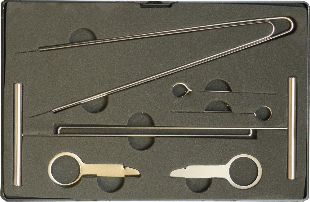 souprava obsahuje nástroje pro demontáž/montáž zámku zapalování, rádia, kabeláže