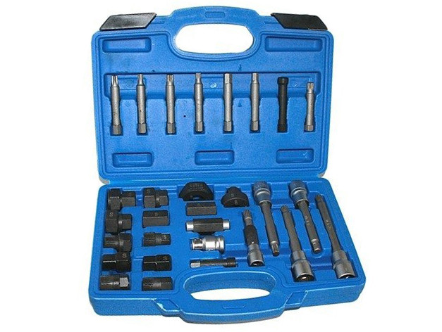 Sada 30 ks klíčů, adaptérů a hlavic pro montáž a demontáž alternátorů: