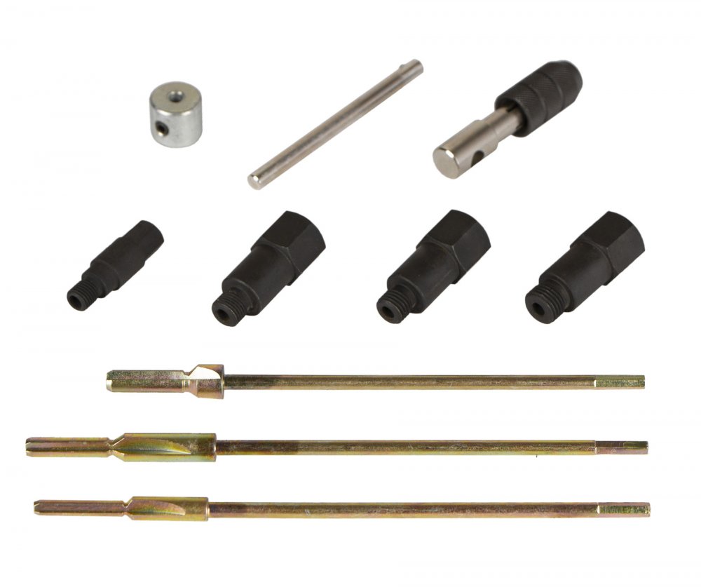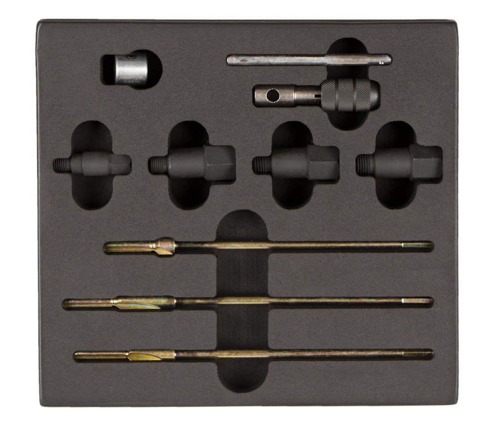 Sada přípravků/výstružníků a vodicích pouzder na sedla žhavicích svíček.