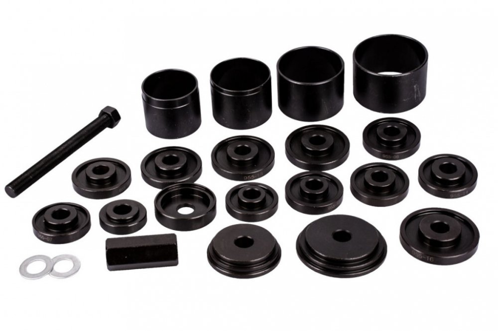 Univerzální sada na demontáž a montáž ložisek nabízí výběr z různých velikostí misek a distančních pouzder. Umožňuje použití na většině prodávaných automobilů.