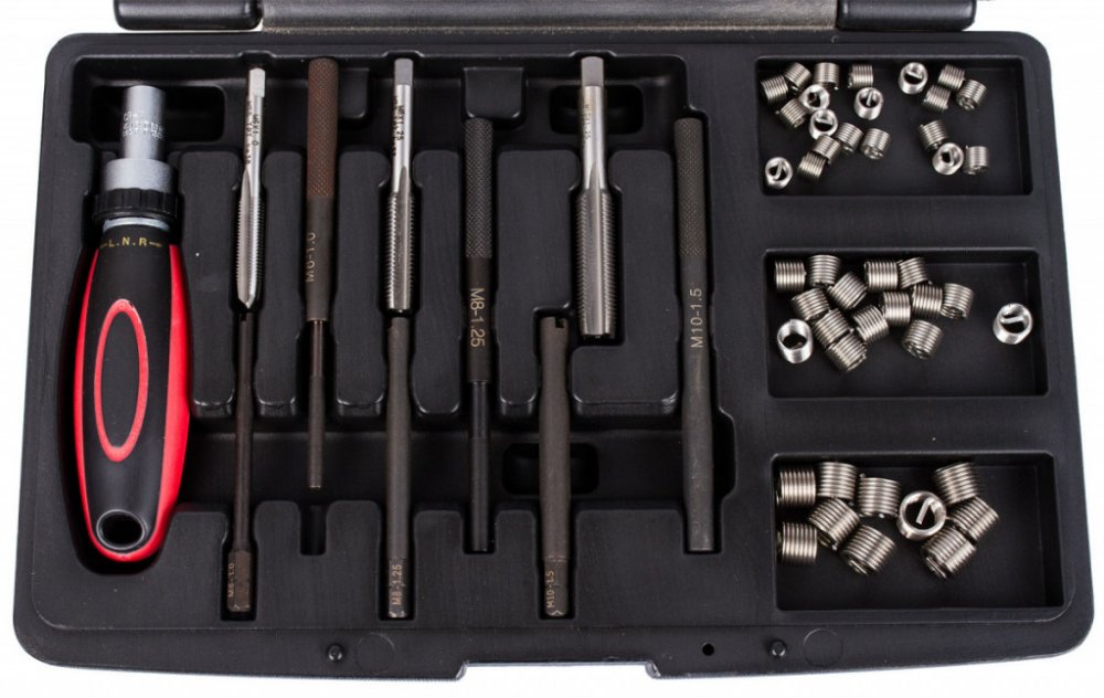 - sada obsahuje 3 typy závitových vložek: 20 ks M6 x 1.0, 15 ks M8 x 1.25, 10 ks M10 x 1.5