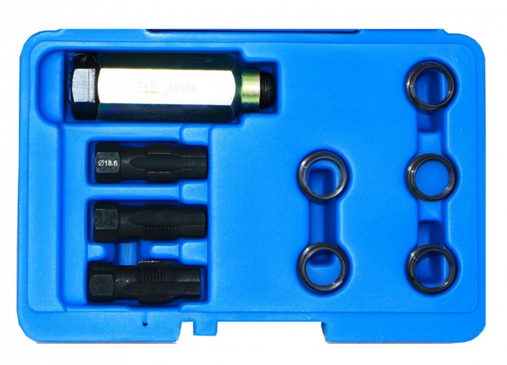 - Závitník M20 x 1,5 a M18 x 1,5. Přípravek pro zavedení opravné vložky. 5x opravná vložka.