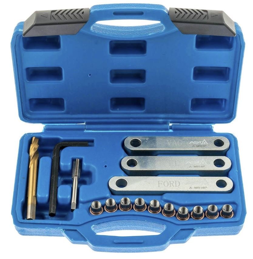 Opravná sada na závity vodítek brzdičů ASTA A-M916P pro regeneraci poškozených závitů velikosti M9 x 1.25 mm.