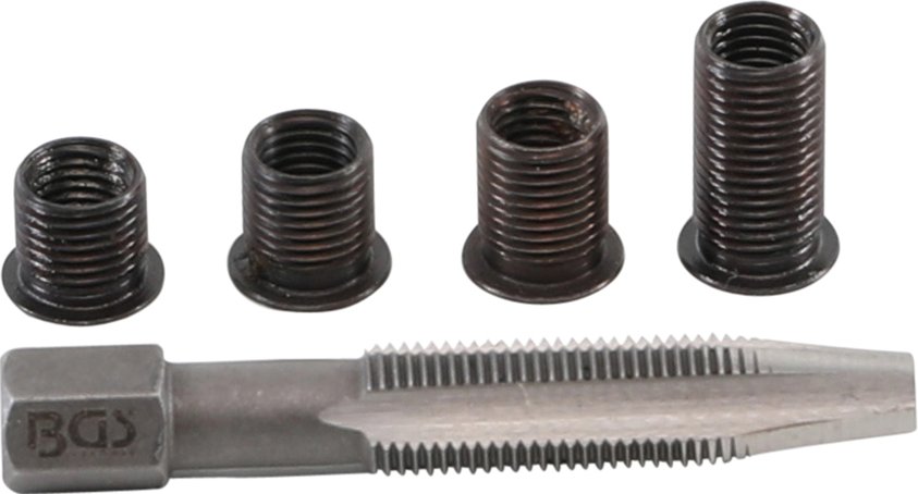 Sada 5 ks přípravků na opravu poškozených závitů zapalovacích svíček.
