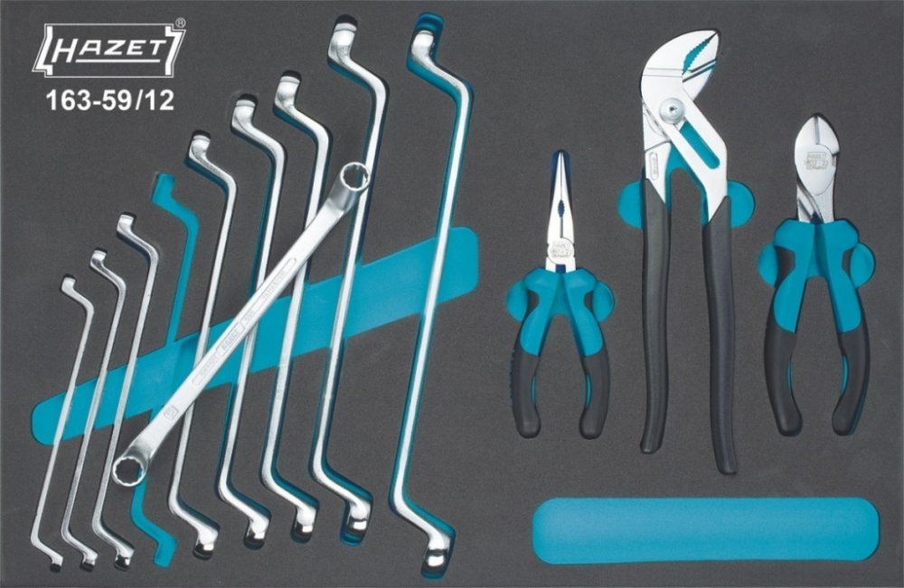 Nezařazeno » Sada nářadí, oboustranné očkové klíče, kleště 163-59/12 Hazet