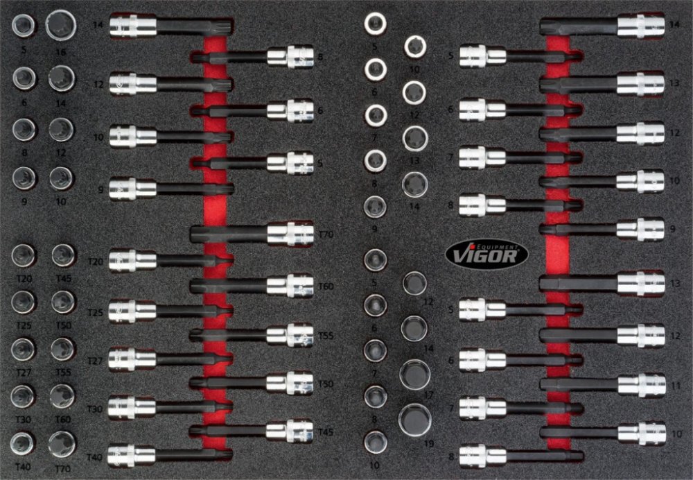 Nezařazeno » Sada nástrčných hlavic s bity 1/2" ve výplni do dílenských vozíků, 70 dílů - V4753