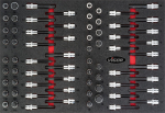 Sada nástrčných hlavic s bity 1/2" v pěnové vložce 2K (3/3+)o rozměrech 563 x 393 mm.