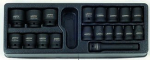 Sada nástrčných klíčů v plastové výplni skříněk a vozíků, rozměr 1/2", celkem 19 kusů, značka LICOTA, velikost 10 - 32 mm.
