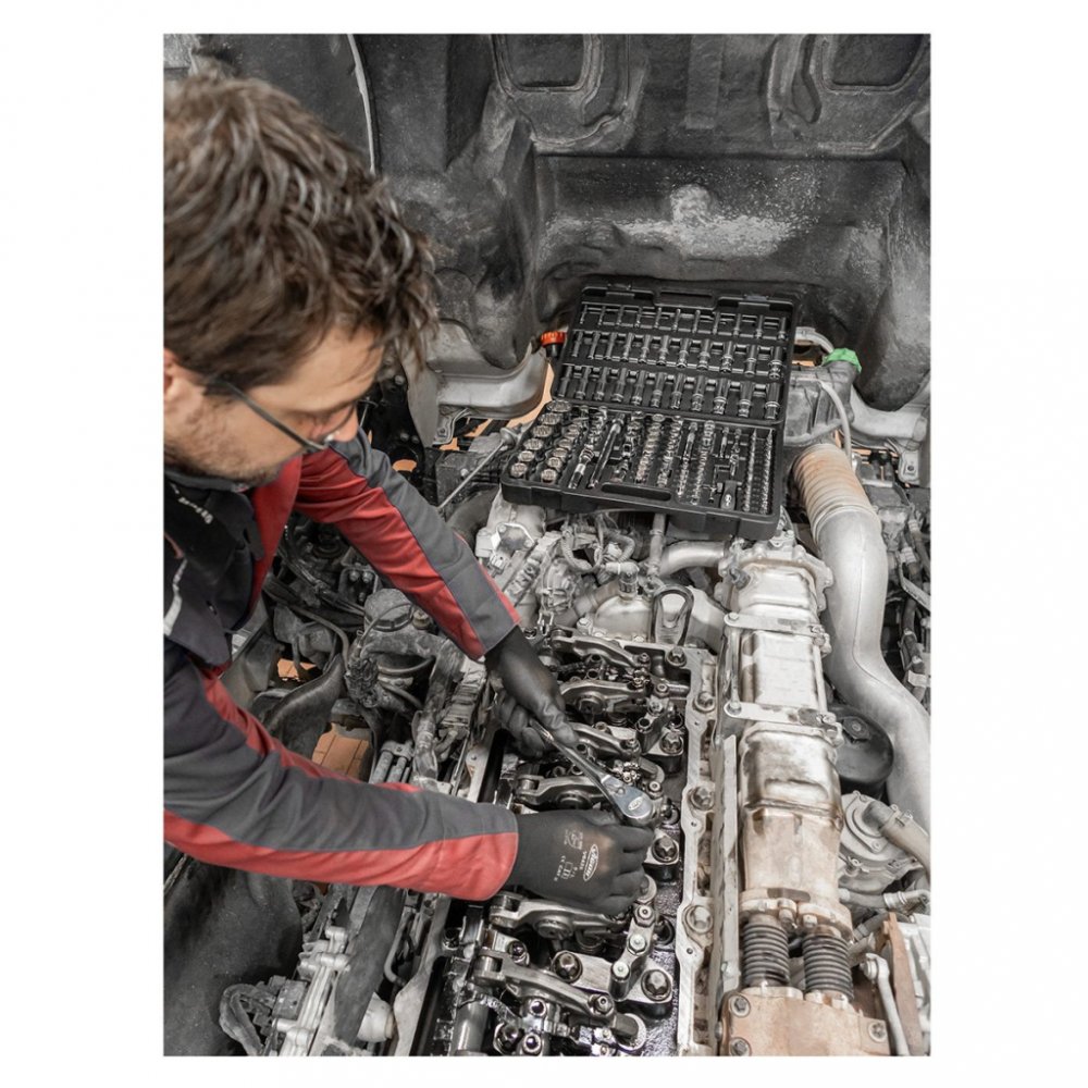133-dílná sada nástrčných klíčů / hlavic / bitů 1/4"-3/8"-1/2" v plastovém kufříku je vyrobena z kvalitního chrom-vanadia.