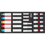 Pěnová vložka o rozměrech (š x h x v) 188 x 393 x 35 mm obsahuje celkem 26 ks profesionálních nástrčných klíčů 1/4" a 1/2".