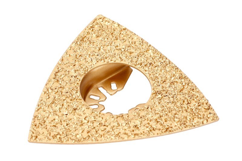 sada nástrojů s univerzálním OIS upínáním pro oscilační brusky 3 x plátek s vrstvou karbidu wolframu - vhodné pro řezání stavebních materiálů, obkladů, dlažby, čištění spár, apod. 1 x škrabka/špachtle pro odstraňování různých materiálů např.lepidla, starého linolea atd.
