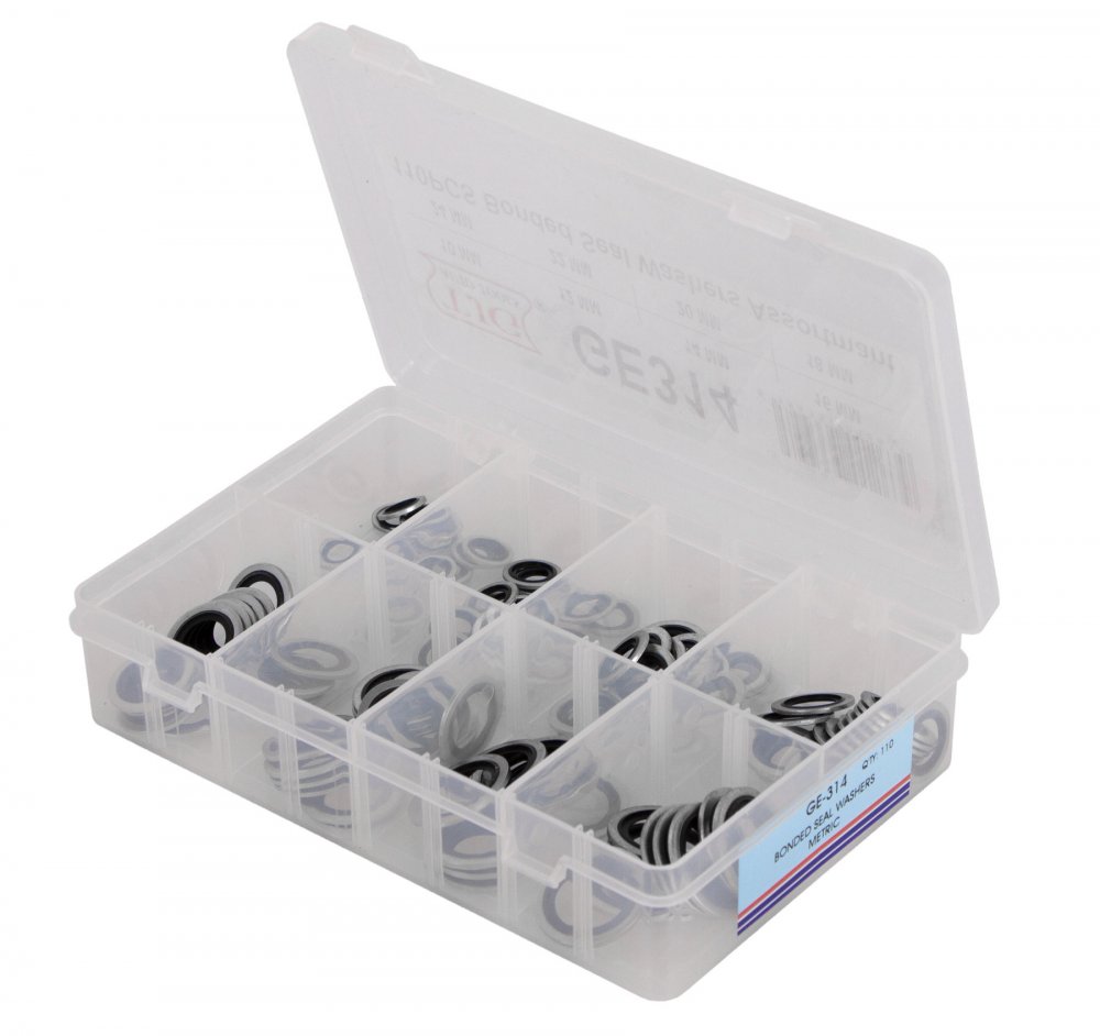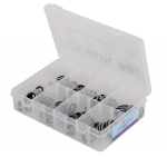 Sada 110 ks ocelových kroužků s gumovým těsněním v 8 různých velikostech.
