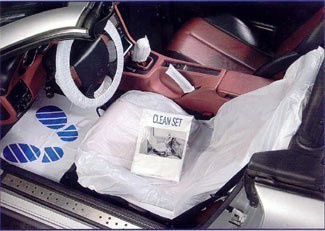 - ochrana sedačky, ochrana koberce folie, ochrana volantu s gumičkou, ochrana řadící páky a ochrana ruční brzdy