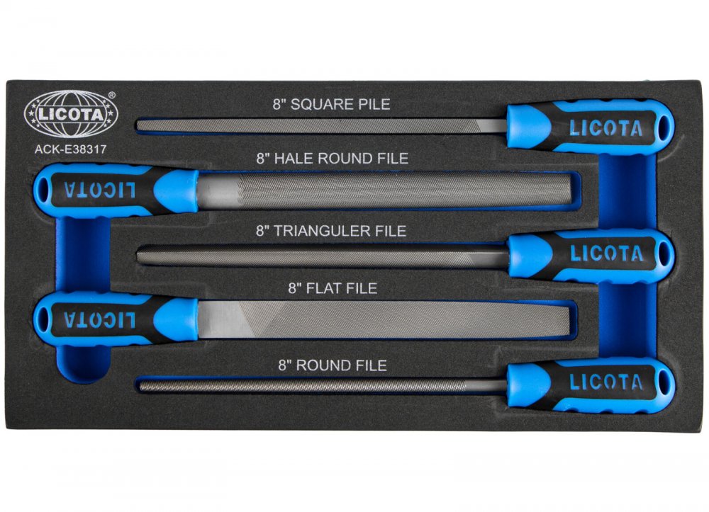 Pěnová vložka o rozměrech 190 x 375 mm obsahuje celkem 5 ks profesionálních pilníků.