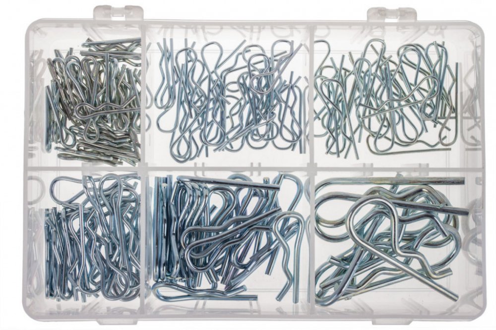 Sada 150 ks pojistných závlaček v plastovém boxu. Obsahuje závlačky: 2.0mm x 32mm, 1.6mm x 36mm, 1.6mm x 42mm, 2.3mm x 43mm, 3.2mm x 52mm a 3.8mm x 75mm.