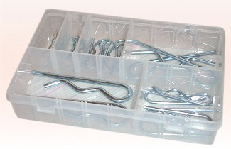 Sada 25 ks pojistných závlaček v plastovém boxu. Obsahuje závlačky: 2.0mm x 43mm, 2.5mm x 45mm, 3.0mm x 54mm, 4.0mm x 75mm, 5.0mm x 107mm a 6.0mm x 117mm. Celý popis