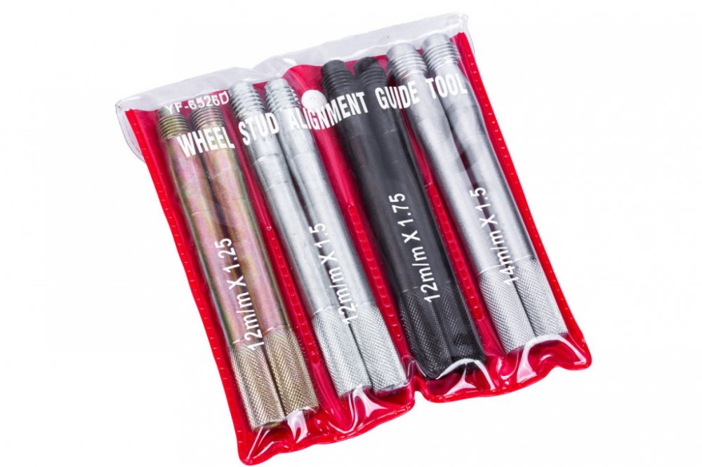 Sada přípravků pro seřízení čepu kola. Velikost: 12 mm x 1,5; 12 mm x 1,25; 2 mm x 1,75 a 14 mm x 1,5.