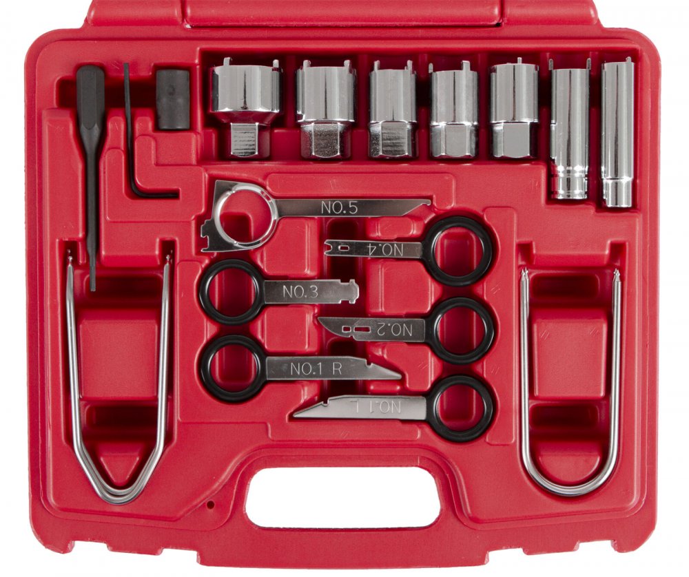 sada kromě přípravku určených pro montáž a demontáž autorádií obsahuje i přípravek na demontáž antén