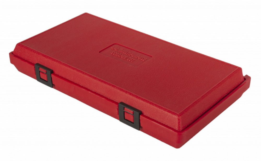 Kompletní sada škrabek se smirkovým papírem je zabalena v plastové kufříku o rozměrech 355 x 190 x 56 mm.