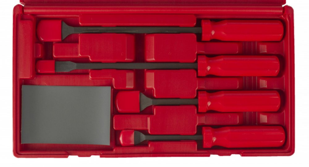 Sada ocelových škrabek nejen pro karosářskou práci. Hodí se například na odstraňování závaží z disků kol a pod.