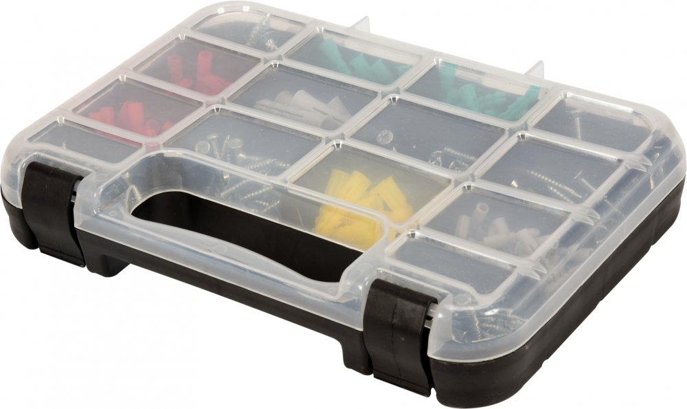 Vše je přehledně uspořádáno v kompaktním plastovém kufříku.