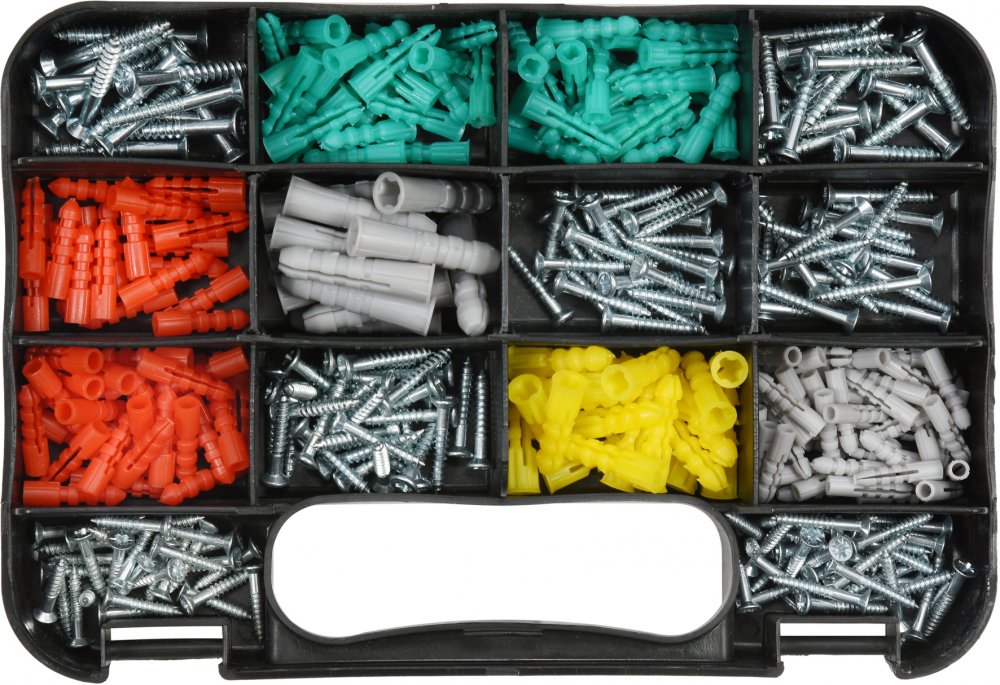 Sada 350 ks šroubů se zapuštěnou, nebo válcovou hlavou do dřeva a hmoždinek