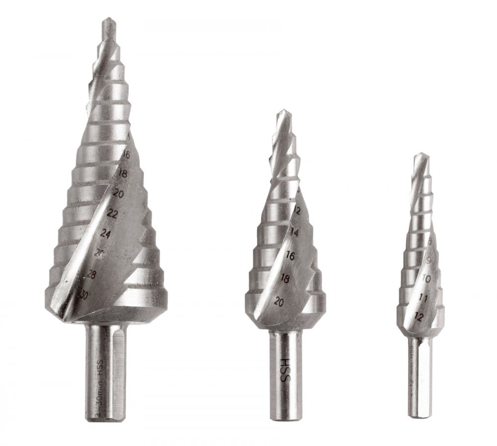 Stupňovitý vrták využijete pro vrtání běžných typů průmyslových plastů a kovu nebo pro vrtání ocelových desek.