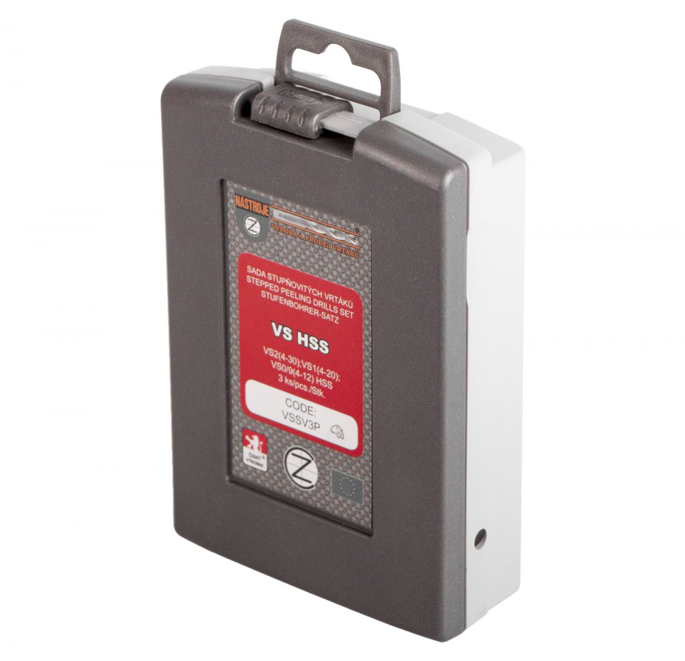 Kvalitní stromkové HSS vrtáky v sadě 3 ks a uložené v uzavíratelném plastovém boxu.