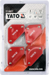 Sada magnetických úhelníků z ocelového plechu a silných feritových magnetů.