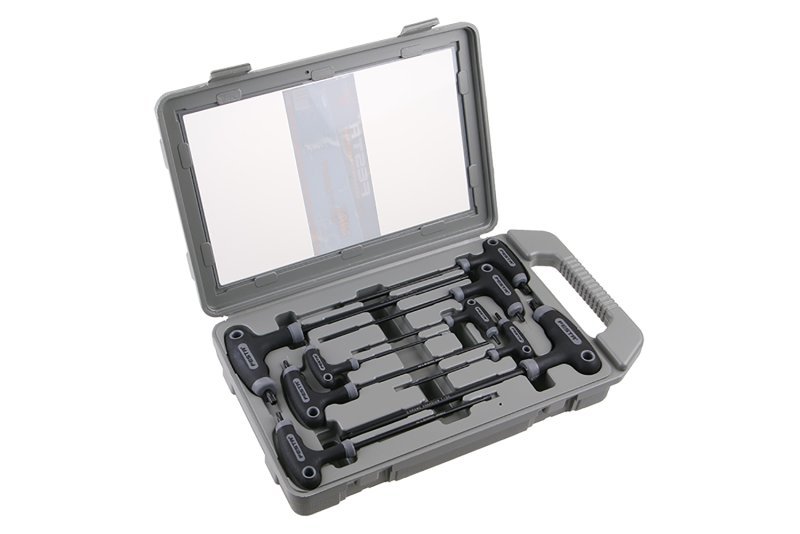 Sada nejpoužívanějších rozměrů L šestihranných klíčů FESTA (imbusů) s plast-pryžovou rukojetí včetně antiskluzového povrchu, CrV, tvrzených v celé délce, baleno v praktickém zavíracím kufříku s průhledem, T10, T15, T20, T25, T27, T30, T40, T45, T50.