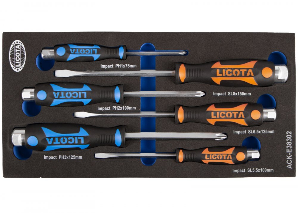 Sada 6 ks profesionálních úderových šroubováků v pěnové výplni pro nejnáročnější použití.