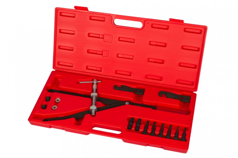 Univerzální sada držáku řemenice a spojky ventilátoru je nezbytná pro snadnou a efektivní práci s motorem. Umožňuje pohodlnou montáž a demontáž spojky ventilátoru a spolehlivě přidržuje řemenici vačkové hřídele. Díky univerzálním rozměrům je vhodná pro široké spektrum automobilů.