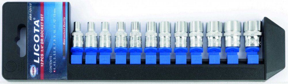 - Sada 12 nástrčných hlavic 1/4".