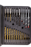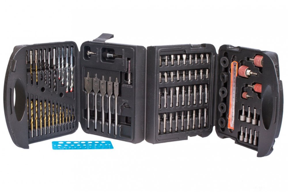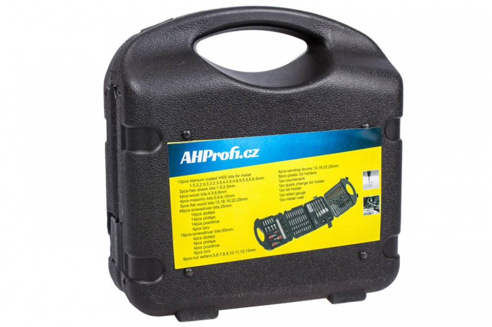 Sada 118 kusů vrtáků a bitů v plastovém kufru obsahuje: