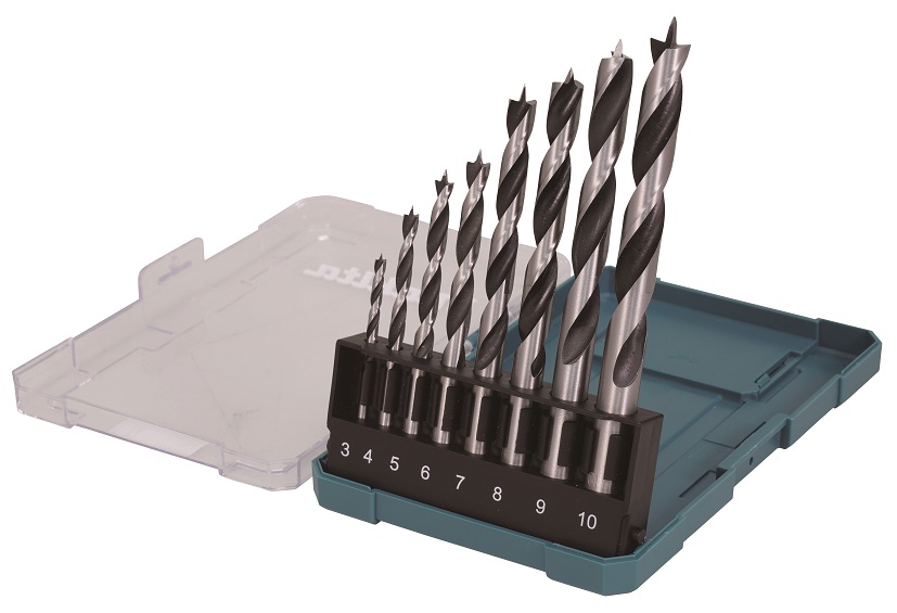 Sada 8 ks vrtáků do dřeva s válcovou stopkou - průměr 3, 4, 5, 6, 7, 8, 9 a 10 mm. Dodáváno v plastové krabičce Celý popis