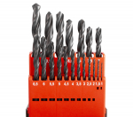 V sadě naleznete vrtáky s průměrem: 1; 1,5; 2; 2,5; 3; 3,5; 5; 4,5; 5; 5,5; 6; 6,5; 7; 7,5; 8; 8,5; 9; 9,5 a 10 mm.