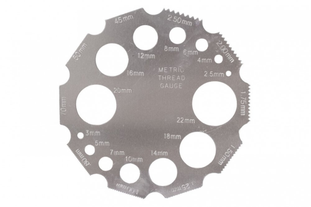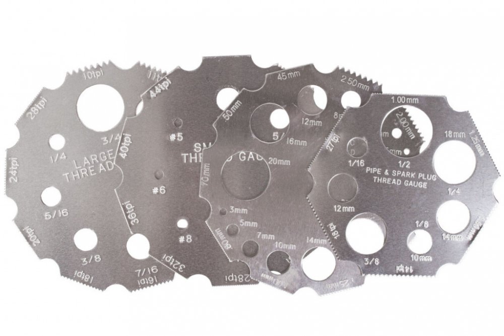 - Na čtyřech šablonách jsou umístěny průměry a profily závitů.