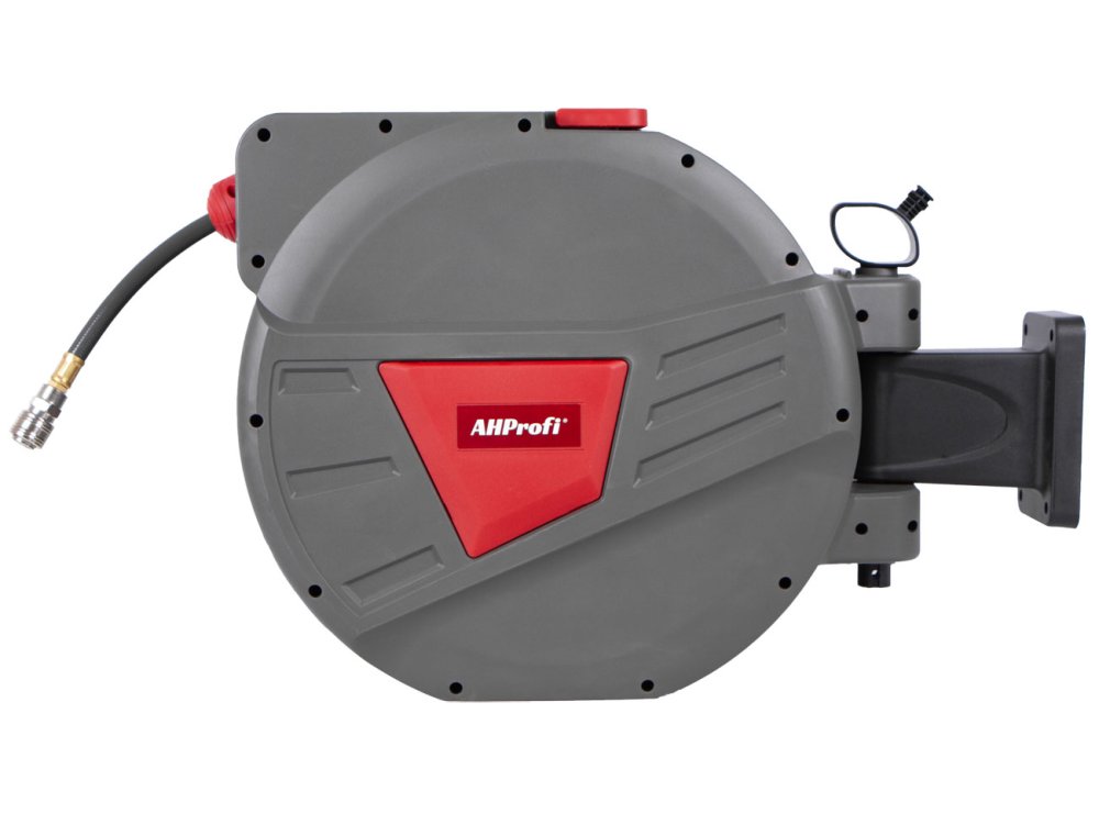 Samonavíjecí buben s 30 metrovou PVC hadicí na stlačený vzduch + 2 metry dlouhá hadice ke zdroji. Pracovní tlak 6 bar, maximální tlak 12 bar.