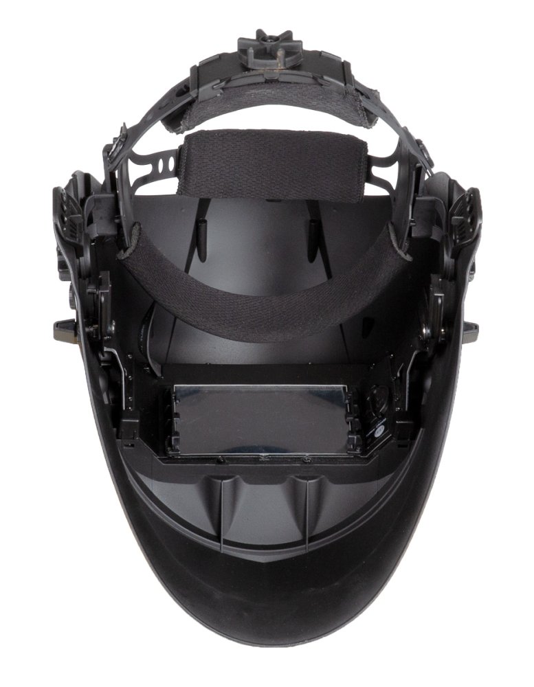 - Svařovací kukla je vybavena výklopným systémem: možnost vyklopení kazety nahoru, aby bylo možné např. při broušení sledovat práci přes čirý ochranný štít