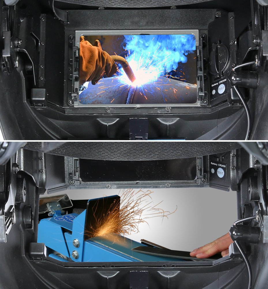 Kukla je vybavena výklopným systémem, snadná manipulace i v rukavicích, kazeta True Color poskytuje pohled na svařování a broušení v reálných barvách.