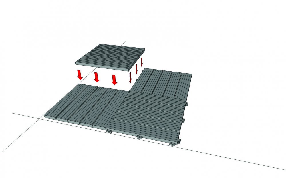 Zámkový systém umožňuje rychlý a jednoduchý způsob pokládky i rozebrání. Díky bočních spojovacích háčku je instalace dlažby velmi jednoduchá a hlavně rychlá.