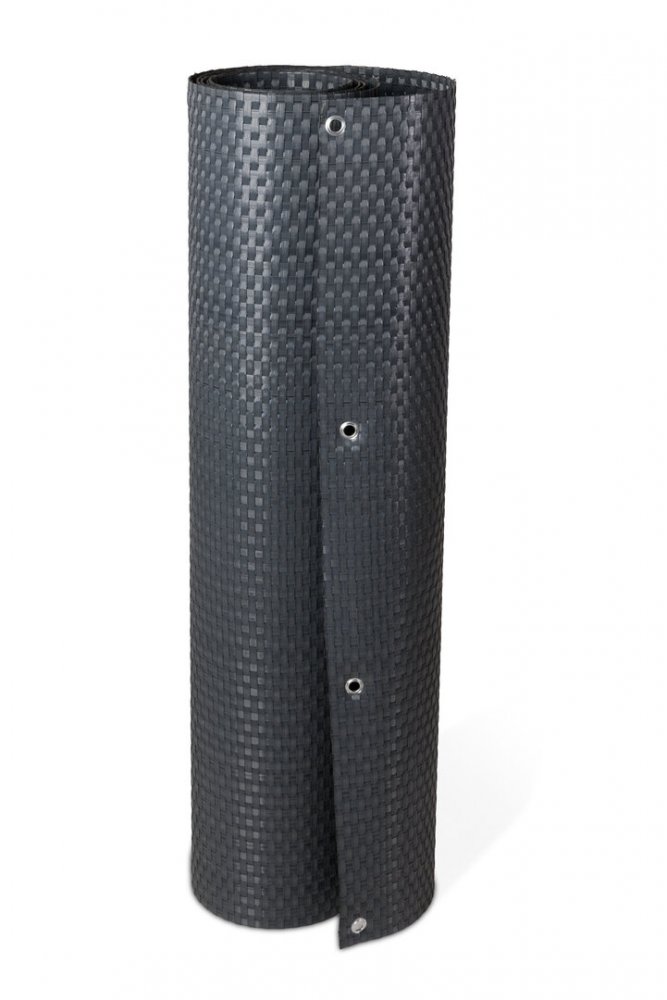 Šedá plastová ratanová stínicí rohož "umělý ratan" s oky (role) - délka 500 cm, výška 75 cm