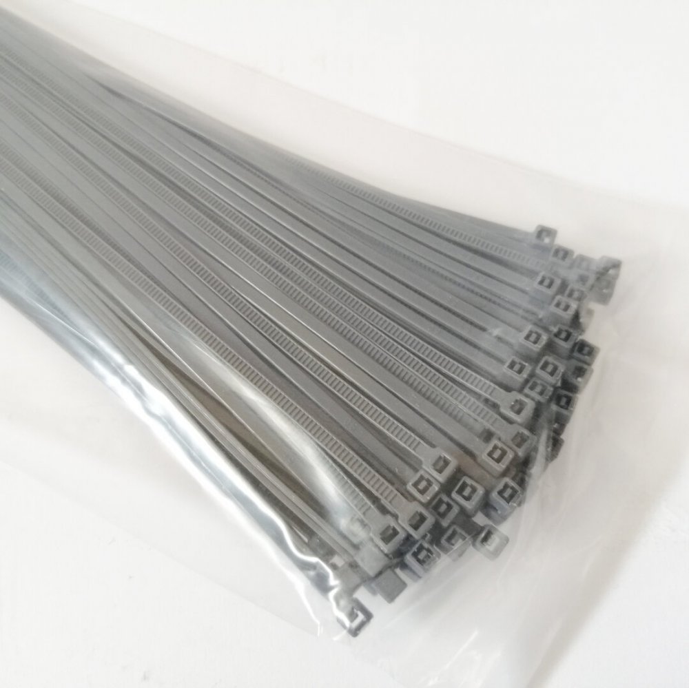 Šedá plastová stahovací páska - délka 20 cm, šířka 0,25 cm - 100 ks