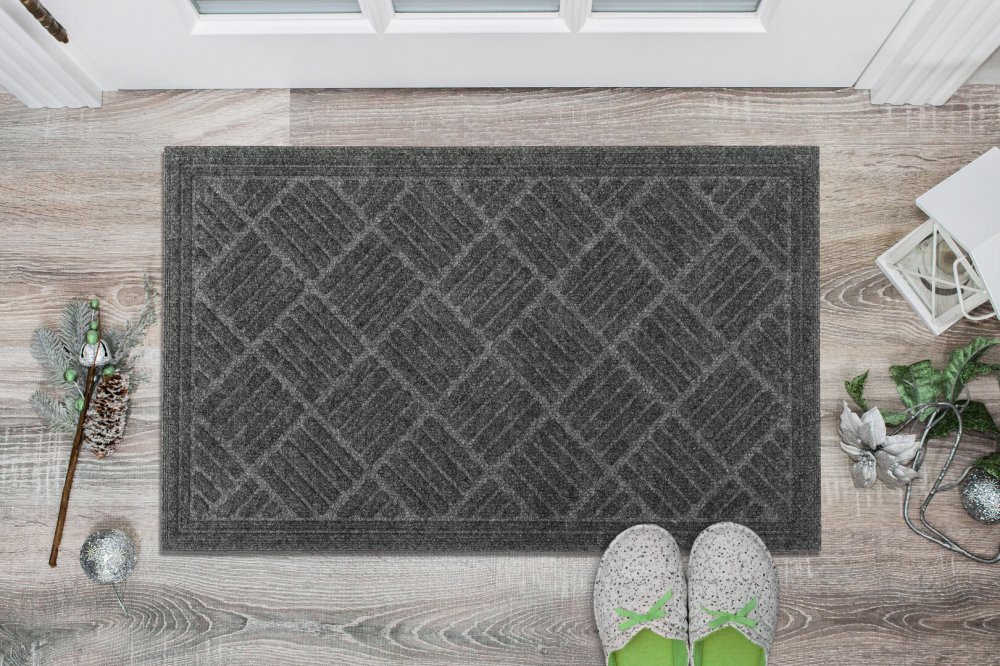 Černá vstupní čistící rohož je stylová rohožka se zajímavým motivem. Rohožka je vyrobena ze 100% recyklovaného polyesteru a spodní strana je z 100% recyklované pryže. Díky těmto materiálům je rohožka odolná a nenáročná na údržbu. Svým designem oživí jakýkoliv vstup do domu, bytu či kanceláře.